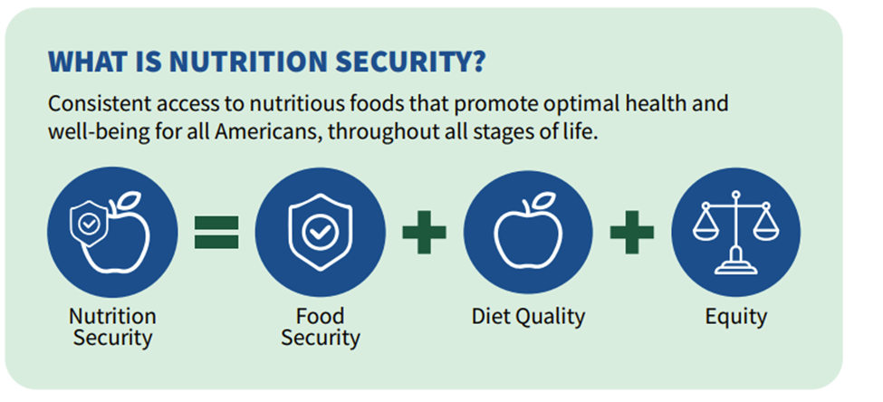 The goal of the focus on nutrition security is to prevent diet-related chronic diseases such as cardiovascular disease, diabetes, obesity, and cancer. Communities of color, families with children, and people in rural areas are disproportionally affected by diet-related chronic diseases.2