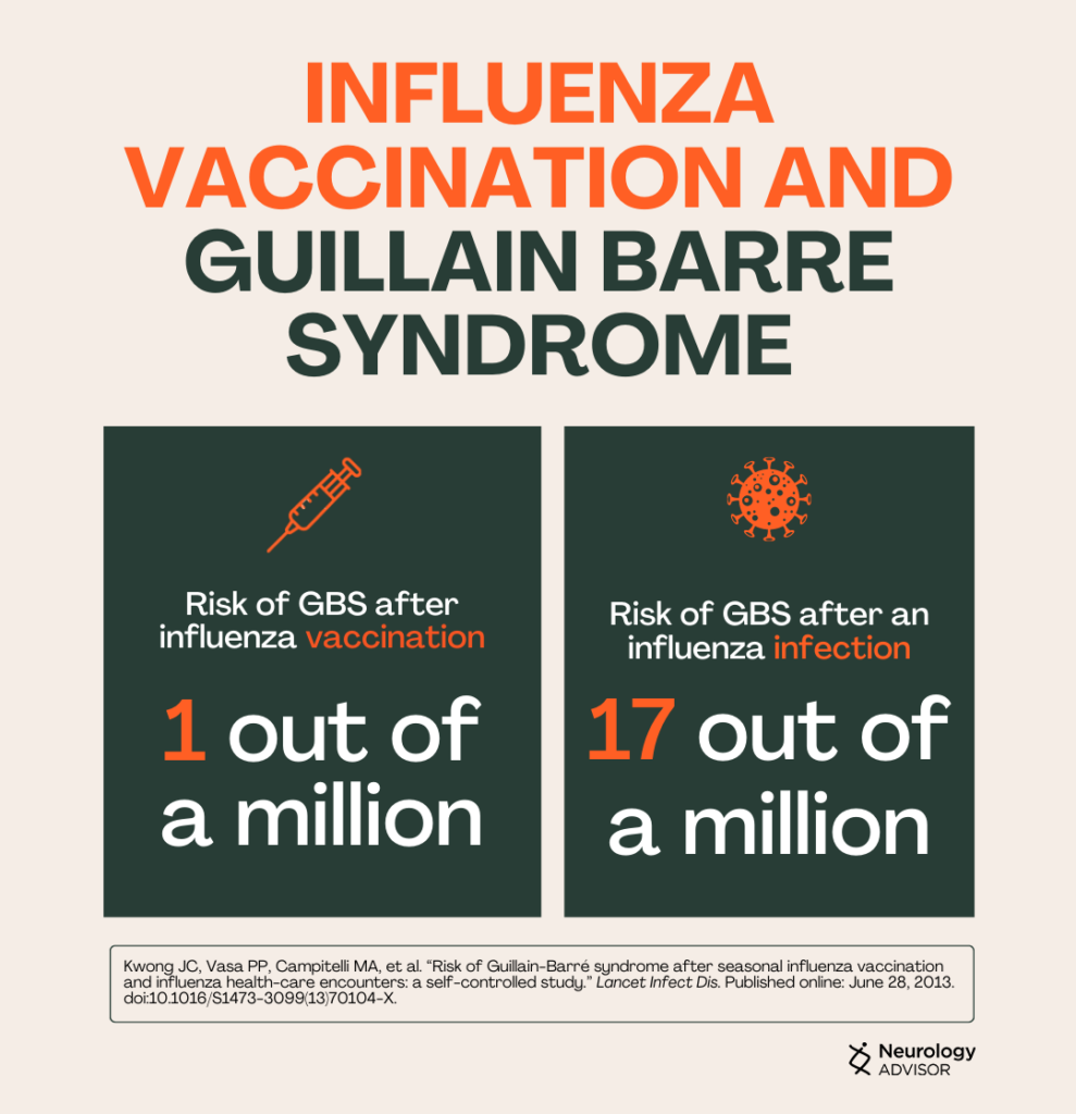 Although some evidence suggests an association between influenza vaccination and GBS incidence, most research indicates that active influenza infection poses a higher risk for GBS, and vaccination may provide protection against it.9